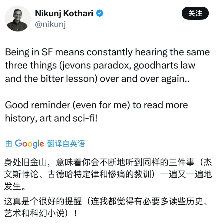 杰文斯悖论会让人越来越习惯用资源、效率、需求去理解世界;古德哈特定律会让人越来越习惯用指标、目标、机制去理解世界;惨痛的教训会让人越来越相信规模、算力、通用方法才是最终答案。